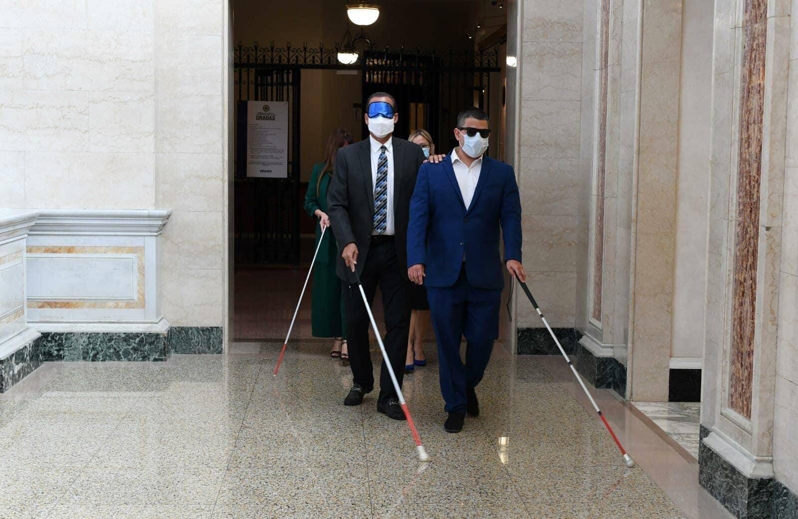 “En esta ocasión decidimos hacer algo diferente, por eso invitamos a varios compañeros legisladores, incluyendo al amigo Jorge ‘Georgie’ Navarro Suárez, para que pasara varias horas del día vendado en sus ojos con el propósito de que conozcan cómo se trabaja, cómo se desenvuelve una persona no vidente en la Legislatura”, dijo Alonso Vega, en declaraciones escritas.