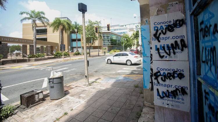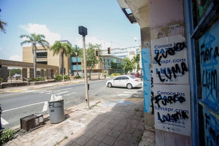 Al cruzar la Avenida Ponce de León, frente a la oficina central de la Autoridad de Energía Eléctrica (AEE) en San Juan, el canadiense Wayne Stensby ve los mensajes con pintura de spray en oposición a la empresa que dirige: “Fuera LUMA”. “No a la privatización”.