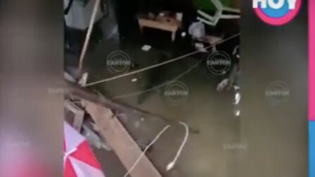 La familia vivió un gran susto cuando descubrieron al animal. Cocodrilo apareció nadando en la sala de una casa inundada.