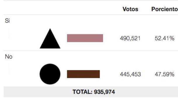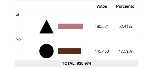 La opción a favor tiene 490,521 adjudicados mientras que el voto para el “no” suma 445,453.