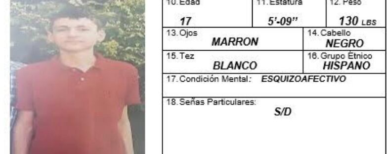Ivan Gabriel Toledo Nieves, fue reportado desaparecido por sus padres y fue descrito como de tez blanca, cabello negro, estatura 5’9” y de un peso aproximado de 130 libras.