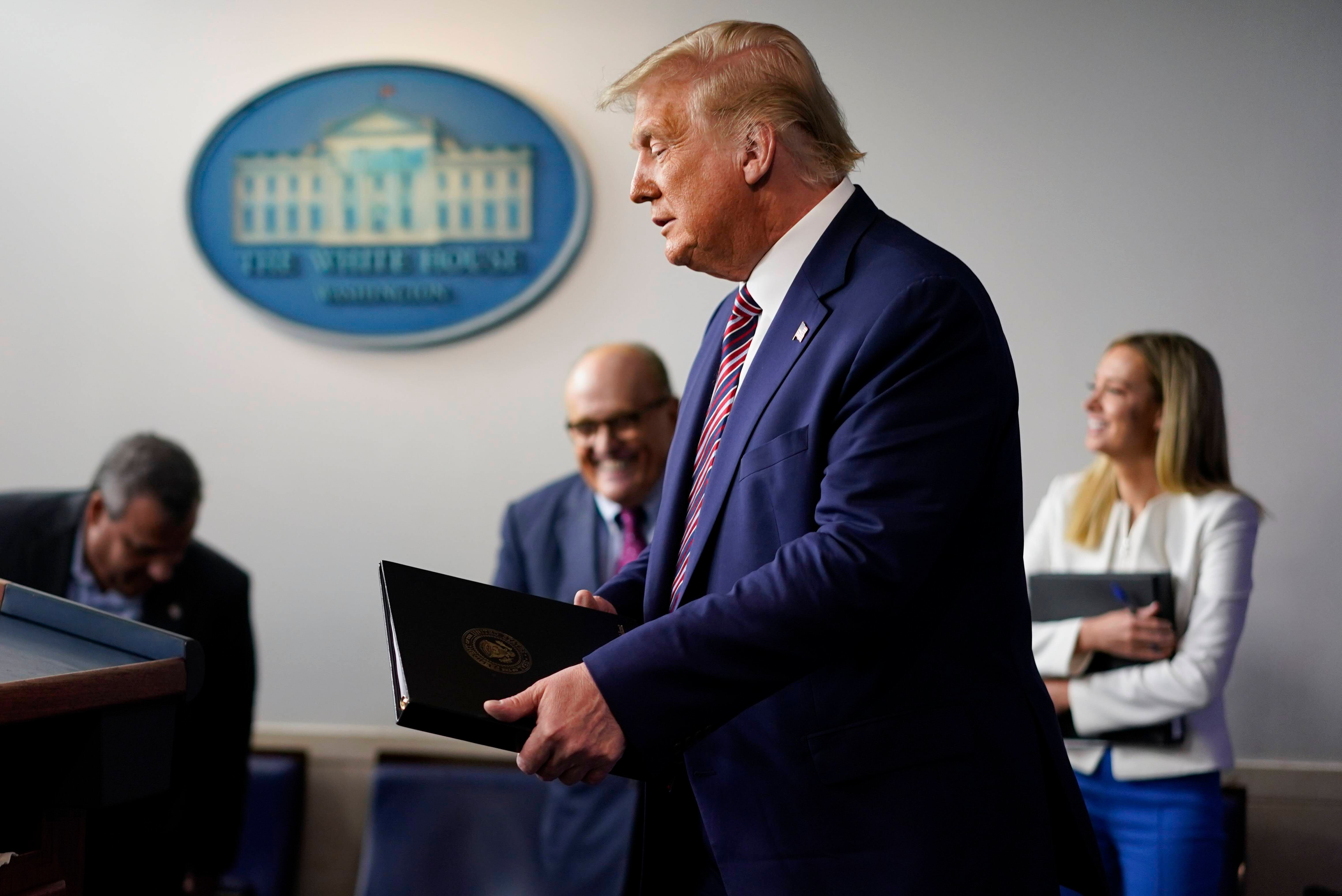 Trump dijo que abogaba por detener el conteo de “votos que llegaron tarde” y continuó destacando las contiendas que ya le habían sido adjudicadas. “Ya he ganado decisivamente muchos estados críticos, incluidas victorias masivas”, afirmó.