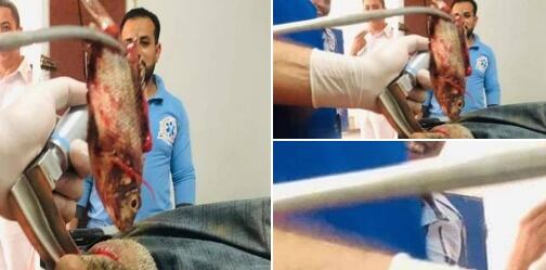 Un grupo de médicos logró extraer un pez vivo de la garganta de un hombre tras sufrir un extraño accidente en la ciudad de Beni Suef en Egipto.