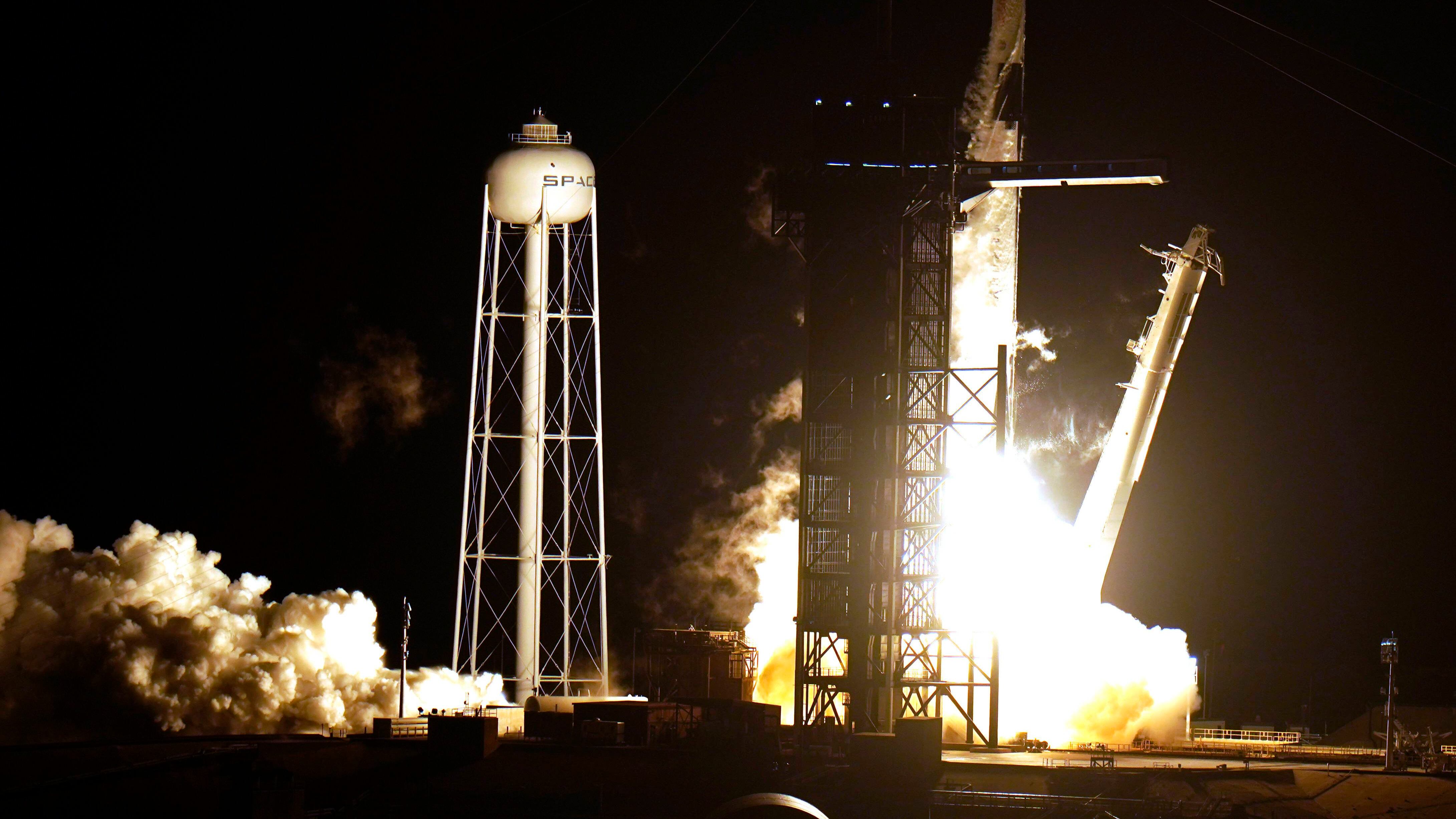 El cohete Falcon 9 se adentró ruidosamente en el oscuro firmamento desde el Centro Espacial Kennedy con tres estadounidenses y un japonés, la segunda tripulación en ser lanzada al espacio por SpaceX. La cápsula Dragon en la parte superior del cohete — a la que la tripulación nombró Resilience (Resistencia) luego de los muchos retos de este año, especialmente el COVID-19 — arribará a la Estación Espacial el lunes por la noche y permanecerá allí hasta la primavera boreal.