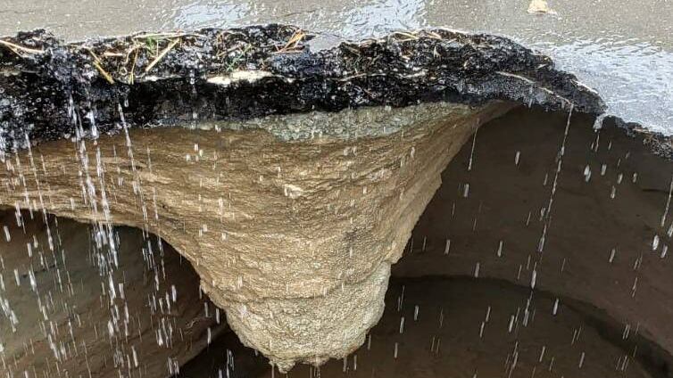 La Policía suministró fotos en las que se observa un enorme agujero en el área.