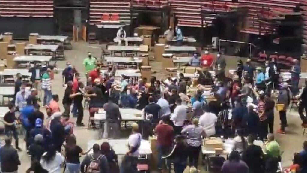 El momento quedó capturado en video, y refleja cómo los ánimos comenzaron a caldearse al interior de la jaula de la Comisión Estatal de Elecciones luego de que el comisionado electoral del PNP, Héctor Joaquin Sánchez, diera instrucciones de que ningún funcionario se moviera de las mesas pese a que el director de escrutinio anunciara la paralización de los trabajos
