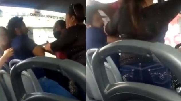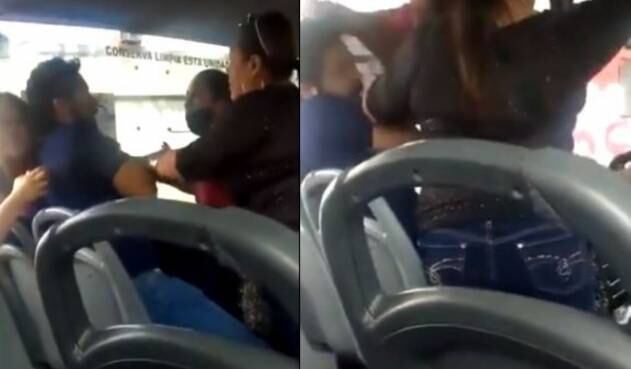 Todo ocurrió dentro de un bus de servicio público, que continuó su ruta en medio de la discusión. Un hombre fue descubierto junto a su amante por su esposa y su suegra.
