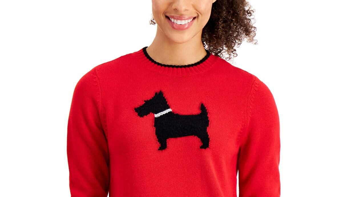 Tiene colores de Navidad, pero también una figura tan adorable como los ciervos y muñecos de nieve: un perrito terrier. Lo mejor, es atemporal.
