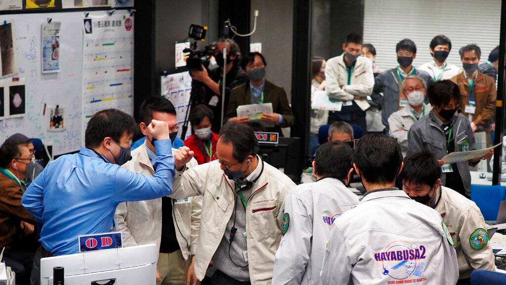 Unas dos horas después, JAXA dijo que habría reconducido con éxito a la Hayabusa2 a su nueva misión, mientras su exultante personal intercambiaba choques de puños y codos en el centro de mando de la agencia en Sagamihara, cerca de Tokio. Los abrazos quedaron descartados debido a la pandemia de coronavirus.