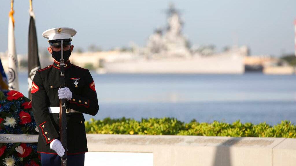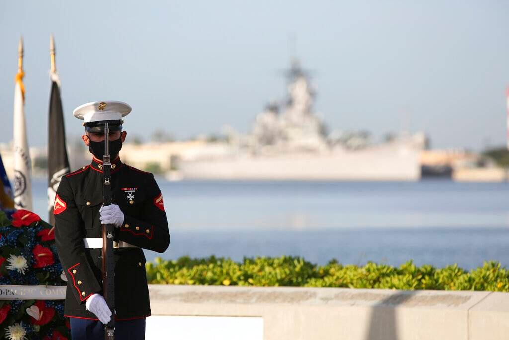 Personal militar y del Servicio de Parques Nacionales se reunió el lunes en Pearl Harbor para rendir homenaje a quienes murieron en el ataque japonés de 1941, pero los sobrevivientes de edad avanzada presentaron sus respetos desde casa a fin de evitar los riesgos por la pandemia de coronavirus.