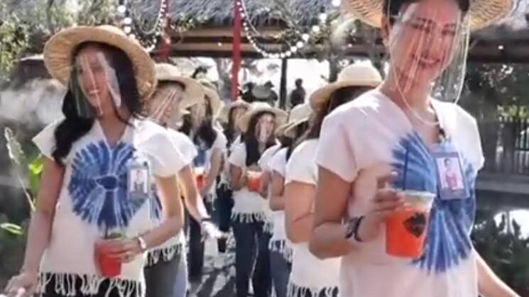 La caída envió a las 30 candidatas al concurso de belleza caer a un estanque sucio. El momento fue captado en video, cuando las mujeres vestidas de jean, camisetas blancas, sombreros y protectores faciales saludaban sonriendo.
