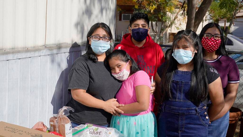 “Cuesta darles de comer a los cuatro chicos todos los días”, dijo Leocadio frente a su casa, tras recibir ayuda de la Sociedad de San Vicente de Paul en Phoenix, Arizona. La familia recibió dos cajas donadas que incluían latas de tomate, frijoles secos, arroz, cereal para el desayuno y algo que sus hijos adoran: galletitas Oreo.