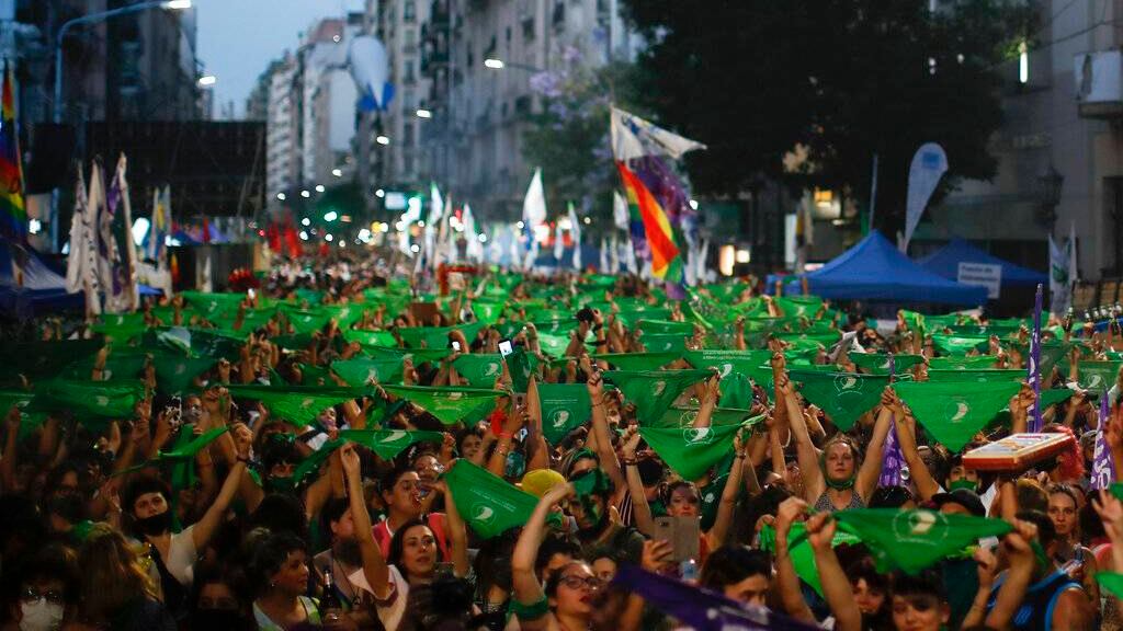 Cuando se transmitió el resultado de la votación en las grandes pantallas instaladas en las inmediaciones del Congreso, miles de activistas proaborto que habían pasado la noche a la intemperie siguiendo los discursos de los legisladores estallaron en gritos de alegría y se abrazaron.