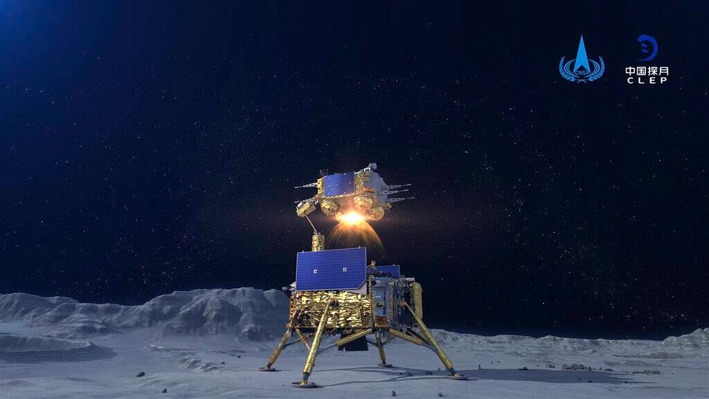 Dos de los cuatro módulos de Chang’e 5 se posaron en la luna el 1 de diciembre y recogieron unos dos kilos de muestras de la superficie y de dos metros debajo de la corteza.