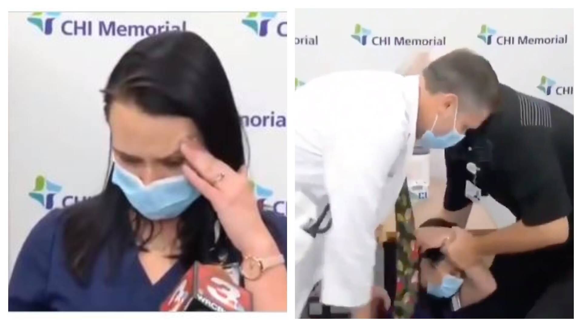 Tiffany Dover, gerente de enfermería del CHI Memorial, en Estados Unidos, se desmayó luego de recibir la vacuna de Pfizer, mientras entregaba declaraciones a los medios de comunicación.