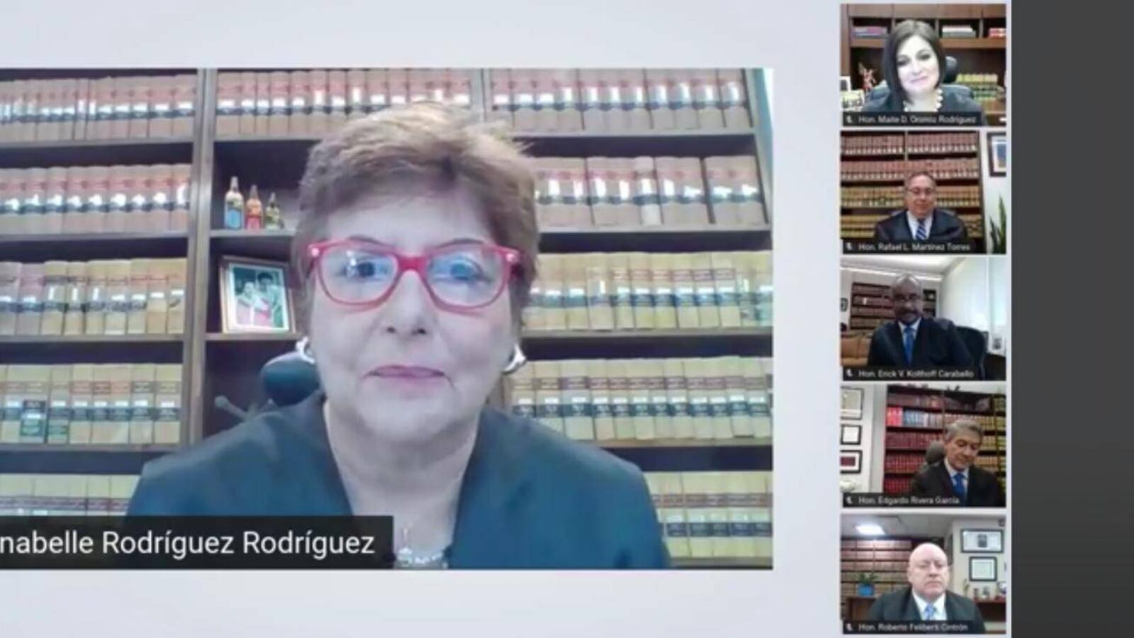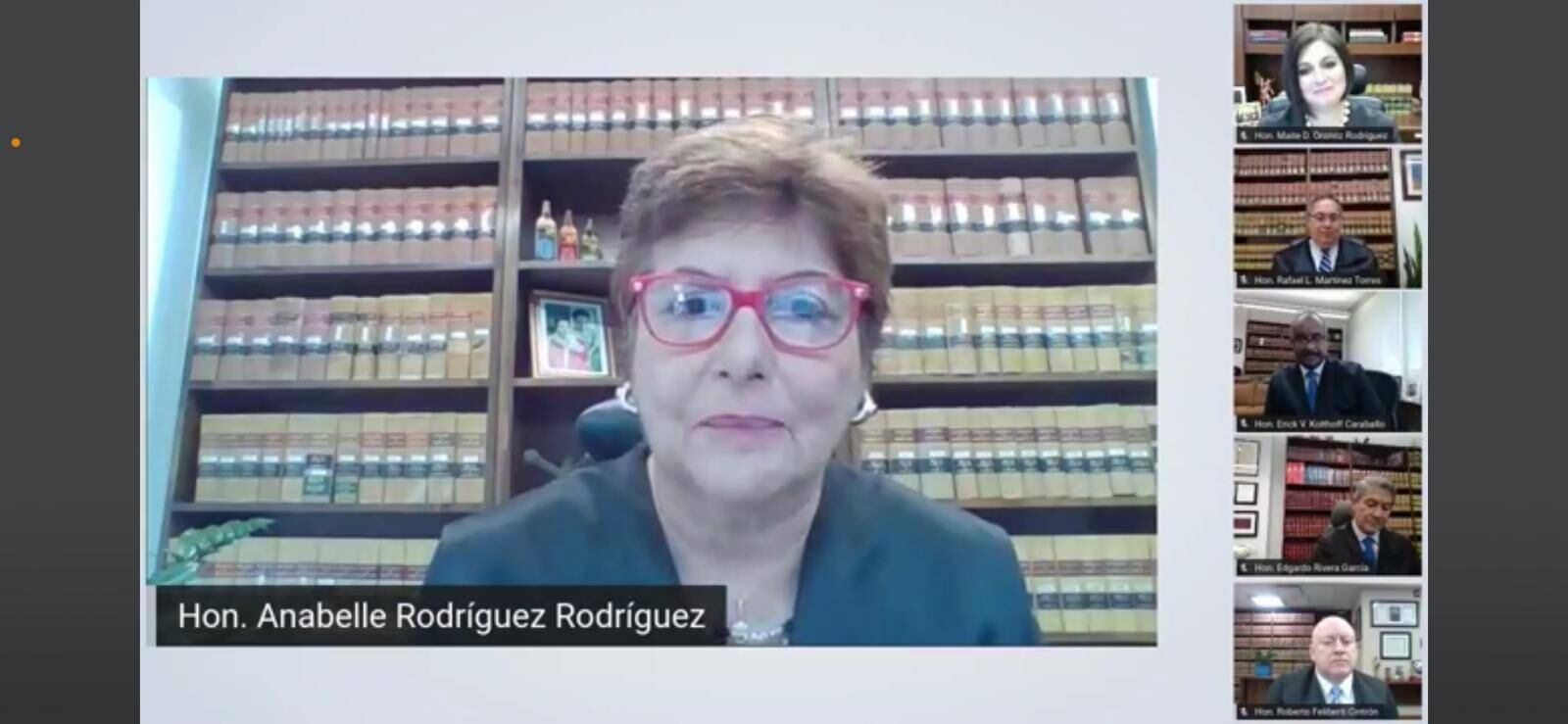 El Tribunal Supremo de Puerto Rico celebró hoy una sesión especial histórica con motivo del cese de funciones judiciales por disposición constitucional de la Juez Asociada, Hon. Anabelle Rodríguez Rodríguez. La sesión para honrar la trayectoria de la Juez Asociada se llevó a cabo de manera virtual por primera vez en la historia del Tribunal y se transmitió por las redes sociales de la Rama Judicial. Acompañada por los Jueces Asociados, la Jueza Presidenta, Hon. Maite D. Oronoz Rodríguez, presidió la sesión y ofreció un mensaje en el que destacó el legado de la Juez Rodríguez Rodríguez, particularmente sus aportaciones al derecho puertorriqueño, desde una perspectiva de género y valor del disenso.