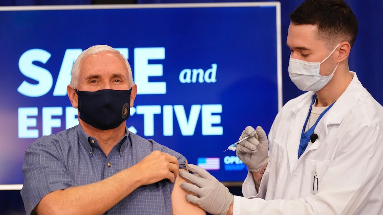 Su esposa Karen Pence y el director de Salud Pública, Jerome Adams, también recibieron la vacuna durante el evento en el Edificio Eisenhower, que forma parte del complejo de la Casa Blanca. Adams, que es negro, destacó la “importancia de la representación” y exhortó a no hacer caso a la desinformación sobre las vacunas.