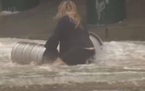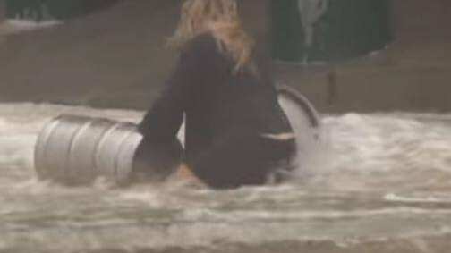 (Video) Amor al licor: mujer se lanzó de cabeza a una corriente de agua para rescatar dos barriles de cerveza