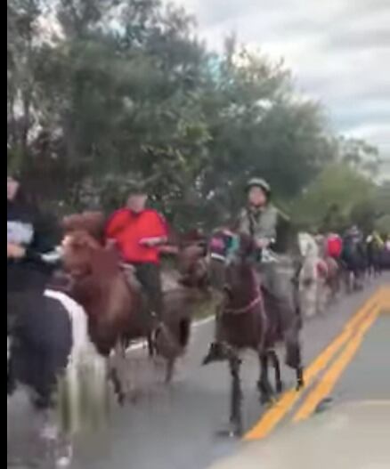 Tal como suele verse en Puerto Rico, en un video que está recorriendo las redes sociales se muestra cómo una decena de personas atravesaban a caballo la carretera dirigidos por una carreta decorada para la ocasión, mientras desde un megáfono se repetía el mensaje de “Feliz Navidad”, en español y en inglés.
