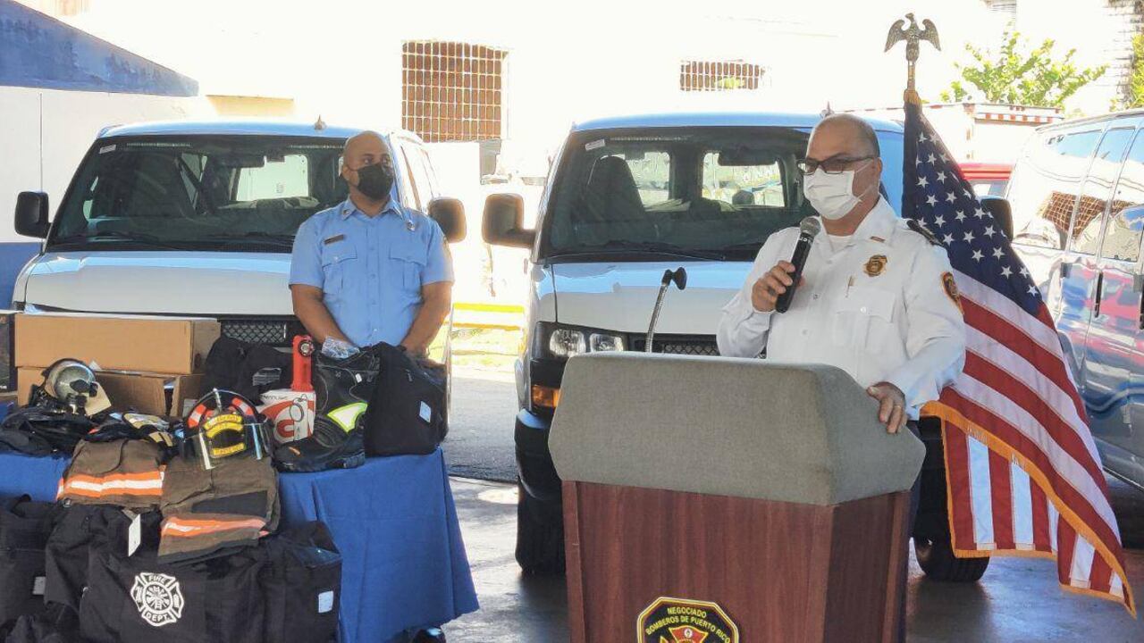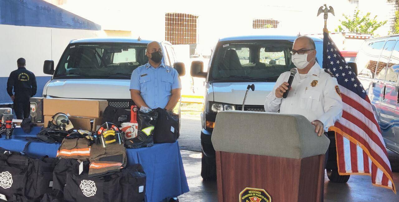 El secretario del Departamento de Seguridad Pública (DSP), Pedro Janer y el comisionado del Negociado del Cuerpo de Bomberos, Alberto Cruz Albarrán, realizaron el martes, la entrega de equipo de respiración y vehículos al personal del Negociado.