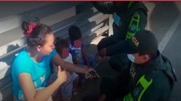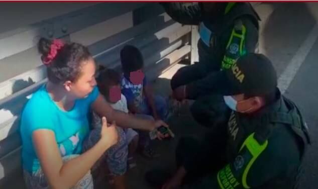 El intendente Héctor Palacios y el patrullero Kevin Escorcia, adscritos a la seccional de Tránsito y Transporte de Bolívar fueron avisados por la comunidad cuando esta mujer de nacionalidad venezolana en una desesperada decisión pretendía quitarse la vida junto a su bebé de un año y otro pequeño de 4.