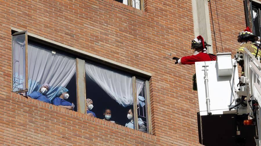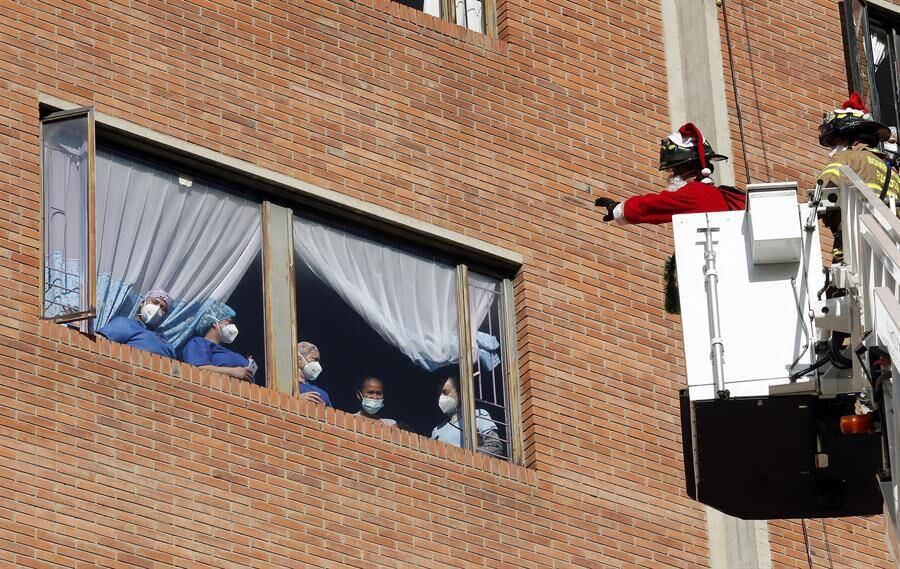 Niños y adultos hospitalizados, al igual que ancianos de un hogar geriátrico de Bogotá, fueron sorprendidos este jueves por un grupo de bomberos que, disfrazados de Papá Noel y subidos en las escaleras de sus carros, les entregaron por las ventanas de sus habitaciones regalos para celebrar la Navidad.