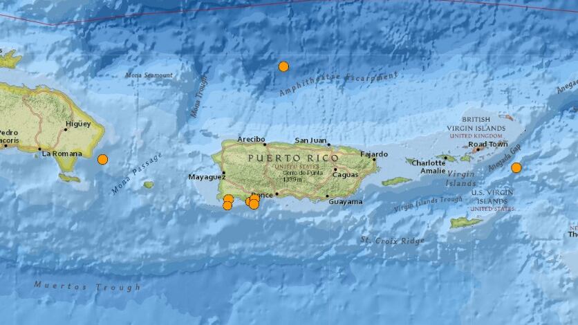 El temblor se ubicó en la latitud 17.90 grados Norte con la longitud 66.84 grados Oeste, a unas 7.4 millas de profundidad (12 kilómetros), de acuerdo al USGS.