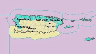 Hay riesgo alto de corrientes marinas hasta tarde el lunes en la noche, desde las playas del noroeste hasta el noreste de la isla grande de Puerto Rico, todas las playas de Culebra y la mayoría del norte y este de Vieques así como las Islas Vírgenes Estadounidenses.
