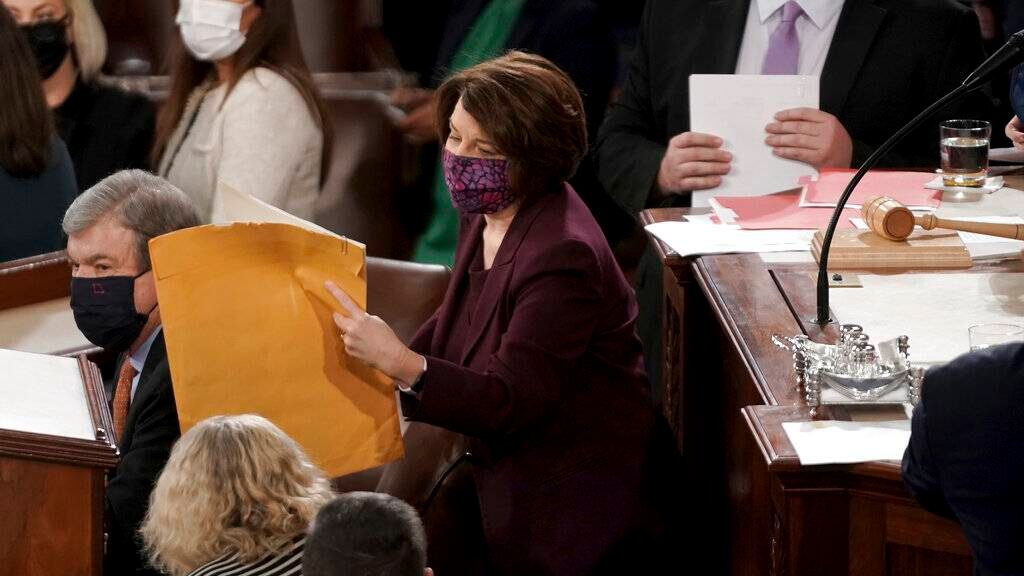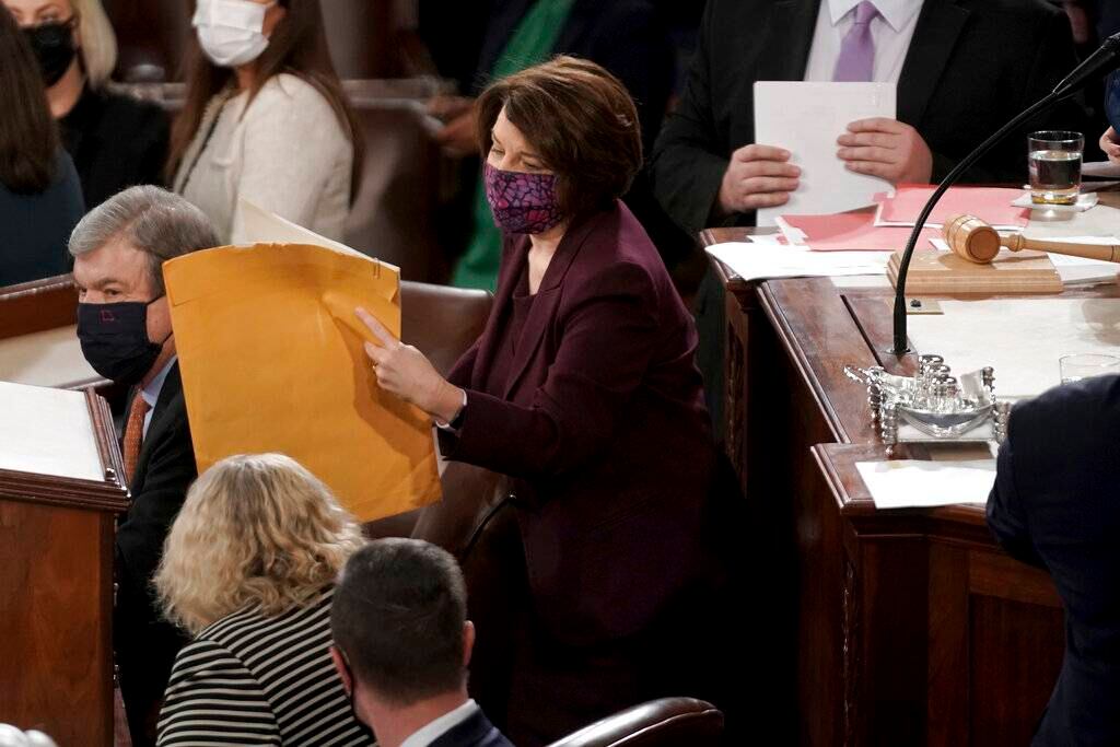Este fue el momento en que Amy Klobuchar, senadora demócrata por Minnesota, leyó oficialmente los resultados de la contienda electoral: