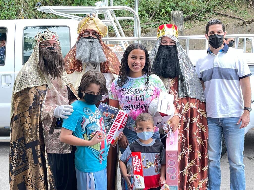 Los tres Reyes Magos acompañaron ayer al alcalde entrante de San Germán, Virgilio Olivera, en la entrega de regalos que éste hizo en varios barrios de la municipalidad.