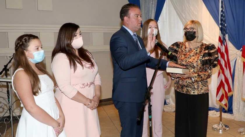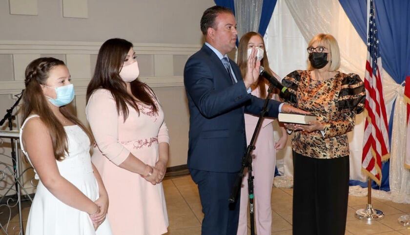 La ceremonia, que fue transitada a través de las redes sociales para evitar aglomeraciones y se limitó a un mínimo de invitados para cumplir con las órdenes ejecutivas, se llevó a cabo en el centro de recepciones y bellas artes de la municipalidad.