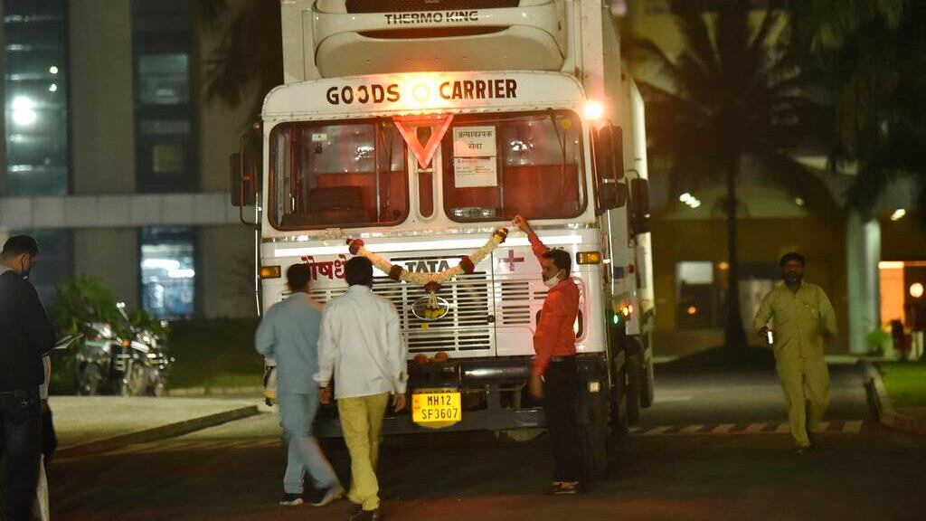 La primera partida de vacunas fabricadas por Serum Institute of India partieron de la ciudad de Pune el martes. El fármaco salió de las instalaciones de la empresa en camiones con temperatura controlada hacia el aeropuerto de la ciudad, donde fueron cargadas en aviones privados para su distribución por todo el país.