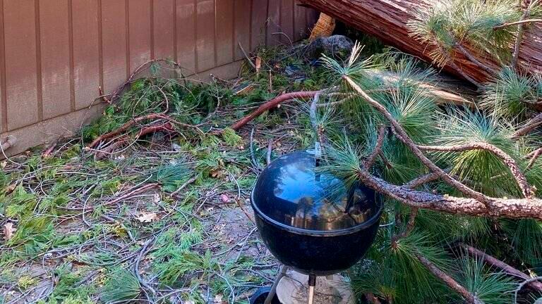 Otros árboles aplastaron camionetas y dañaron edificios, incluso viviendas de empleados.
