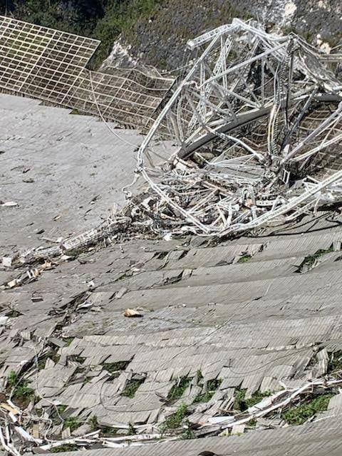 El telescopio colapsó el 1 de diciembre de 2020 cuando un cable que sostenía una plataforma receptora de 900 toneladas se rompió alrededor de las 8:00 am y envió la estructura masiva hacia el plato reflector a más de 400 pies por debajo.