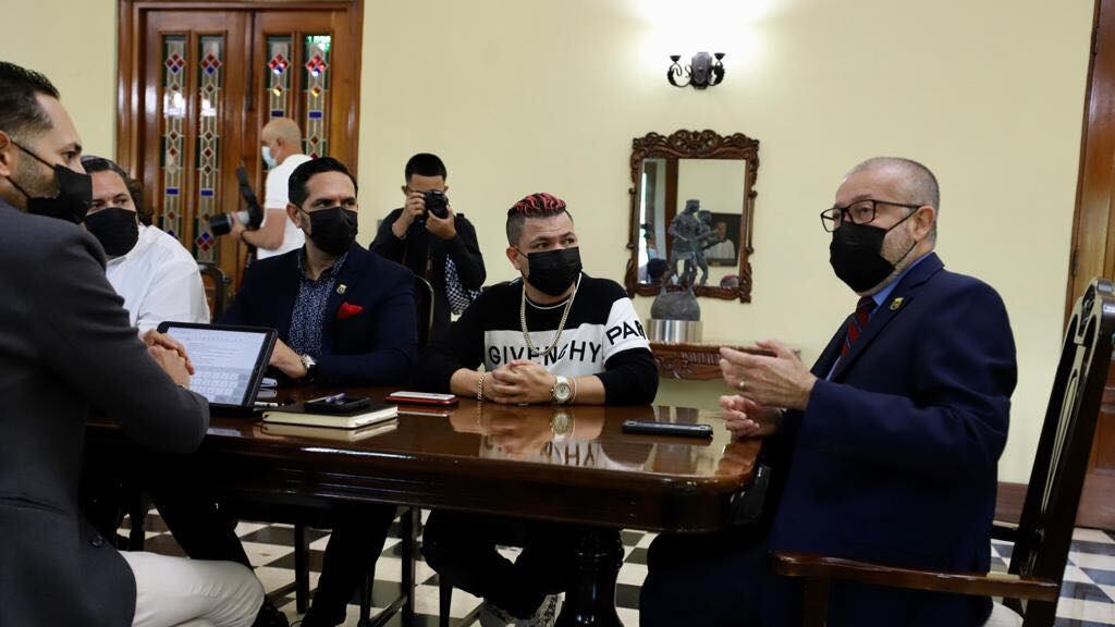 El artista, del dúo Jowell y Randy, estuvo acompañado con el grupo de trabajo de Well Done Music según una publicación del ejecutivo municipal en su cuenta de Facebook.
