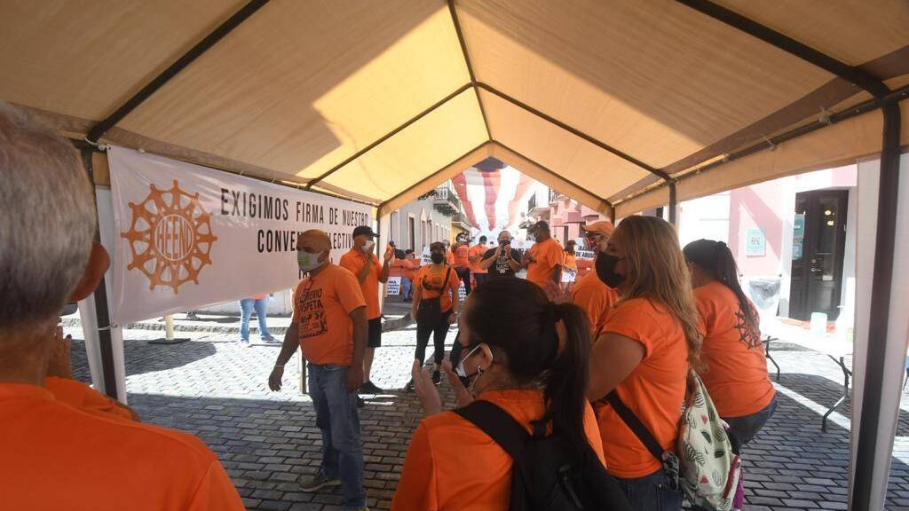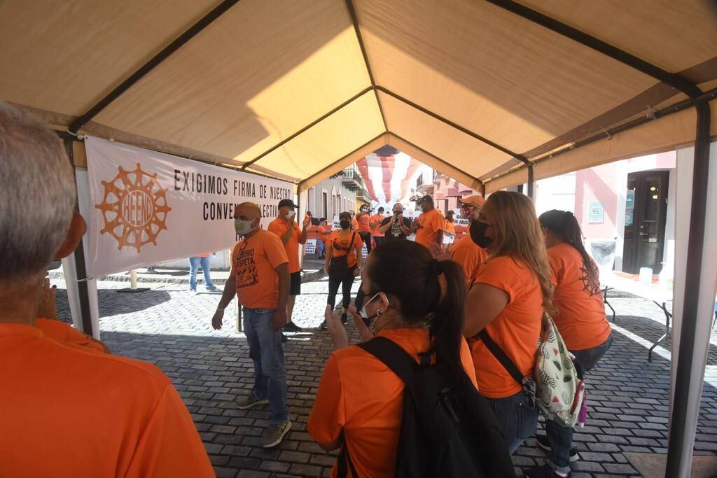 En la mañana de hoy, el asesor de asuntos laborales de La Fortaleza, Yamil Ayala, sostuvo una reunión con el liderato de la Heend, que desde temprano en el día montó un campamento en la intersección de las calles Fortaleza y del Cristo, en un intento de que el gobernador Pedro Pierluisi intervenga con la administración de la UPR y abra la puerta a la firma del convenio.