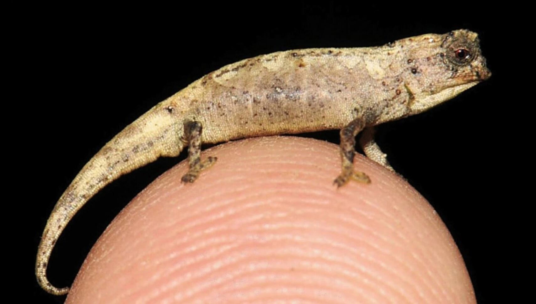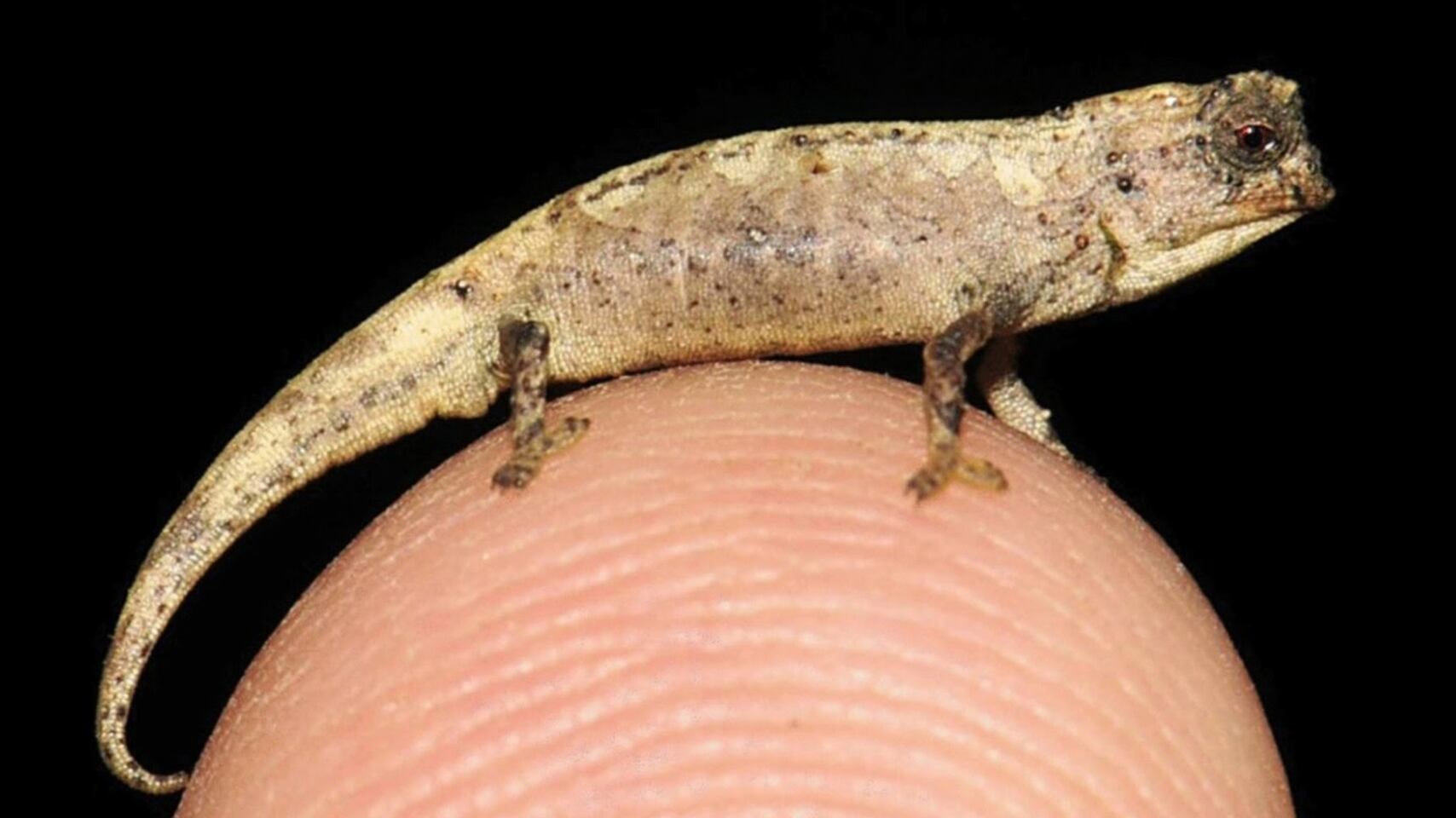 Científicos alemanes han descubierto recientemente una nueva especie de camaleón en una zona de selva tropical del norte de Madagascar. El llamado nanocamaleón cabe en la punta de un dedo, ya que tiene el tamaño de una semilla de girasol. Se cree que es el reptil más pequeño de la Tierra.