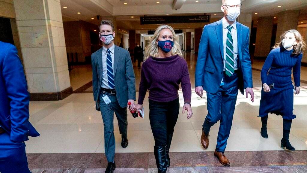 El jueves, los legisladores demócratas votaron —cosa que no hicieron sus contrapartes republicanos en la víspera— a favor de despojar a la representante Marjorie Taylor-Greene de sus puestos en las comisiones, lo cual en los hechos la inhabilita para afectar la aprobación de leyes. Greene ha utilizado las redes sociales para promover los prejuicios raciales, el antisemitismo y la violencia contra los demócratas, posiciones vinculadas al grupo trumpista de teorías conspirativas QAnon.