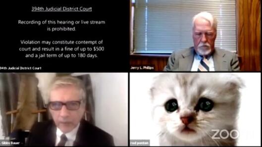Una vista en el Tribunal de Distrito 394 de Texas se disponía a comenzar de manera virtual cuando una inusual imagen se proyectó en las pantallas de los participantes.