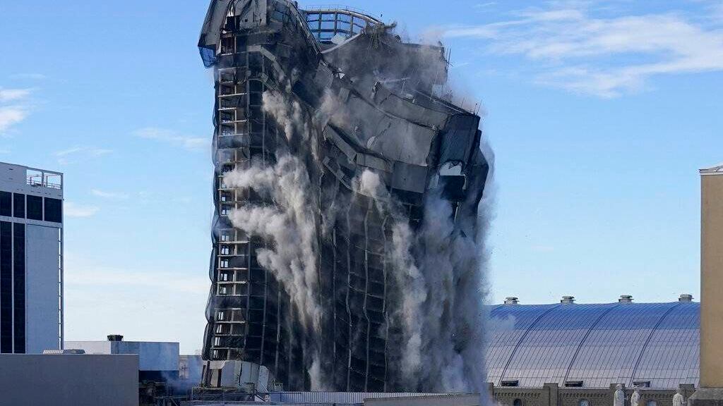 El antiguo casino Trump Plaza fue destruido mediante una implosión cuando su deterioro era tal que trozos del edificio se desprendían y caían a tierra.