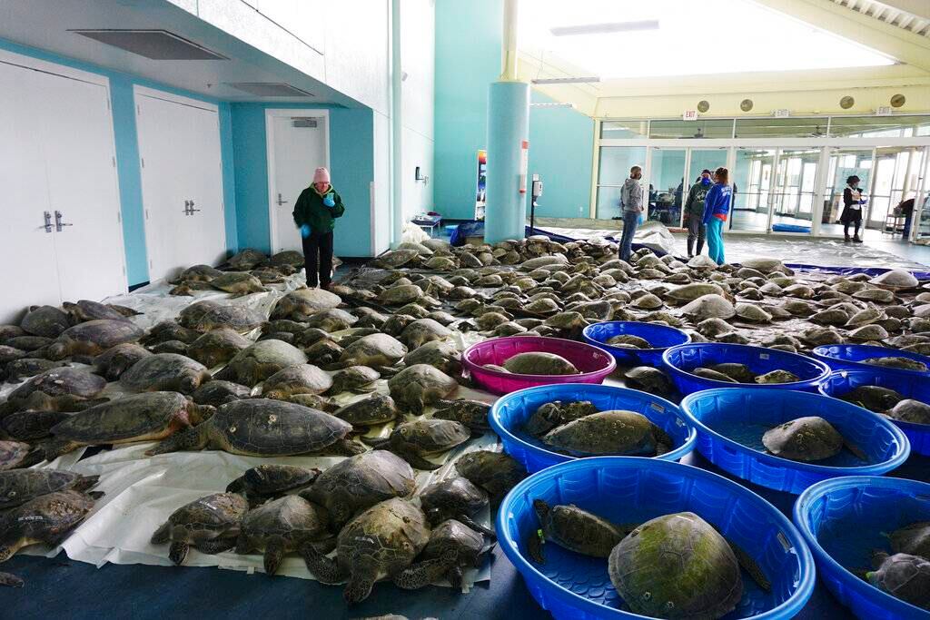 El Centro de Convenciones de la localidad comenzó a colaborar el lunes luego de que su vecino, Sea Turtle Inc., no pudo seguir manejando el número de tortugas marinas que le llevaban, y de que sus instalaciones, en su mayoría al aire libre, se quedaron sin electricidad. Caum señaló que el centro de convenciones tampoco tuvo energía o agua hasta el miércoles por la mañana.