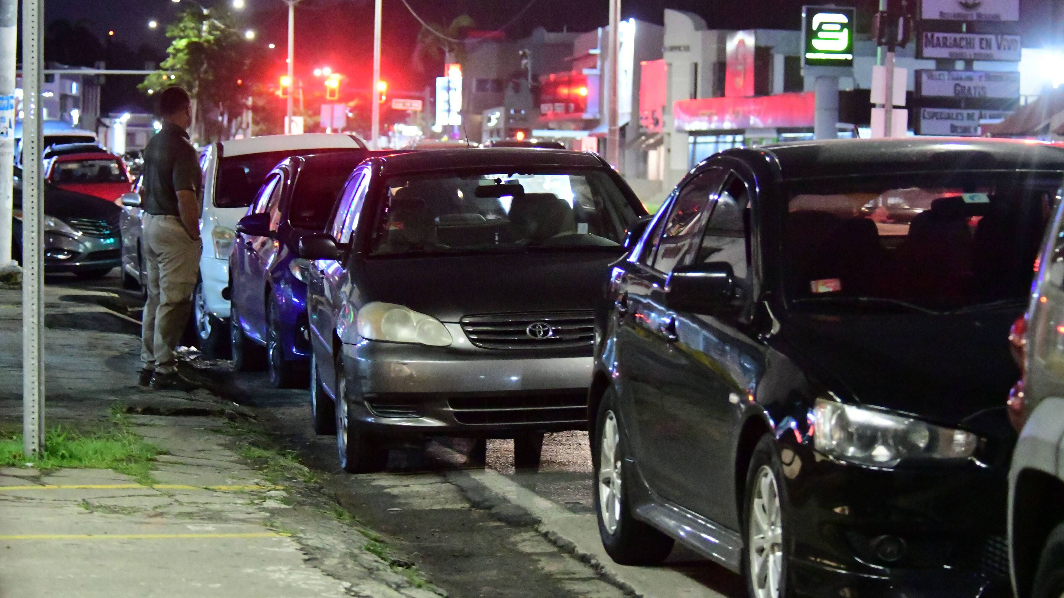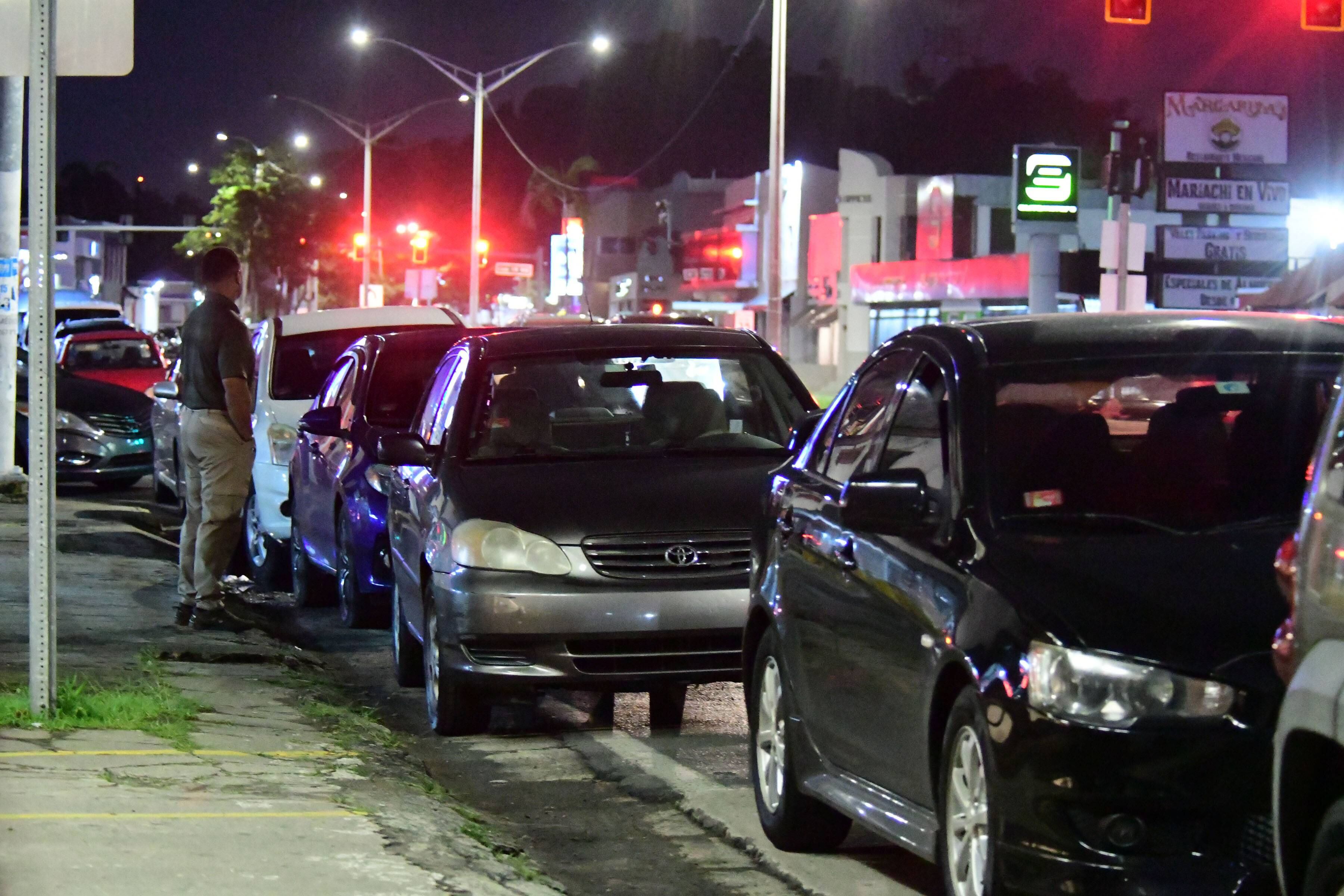 Al sol le falta todavía unas dos horas para asomarse. Hay muchos carros, pero poca gente visible. Algunos duermen en el interior de sus vehículos y otros dan cháchara en la acera de la avenida. Son pocos los rostros que se pueden apreciar. A algunos sus celulares les delata el semblante mientras matan el tiempo deslizando el pulgar en la pantalla de arriba hacia abajo, una y otra vez.