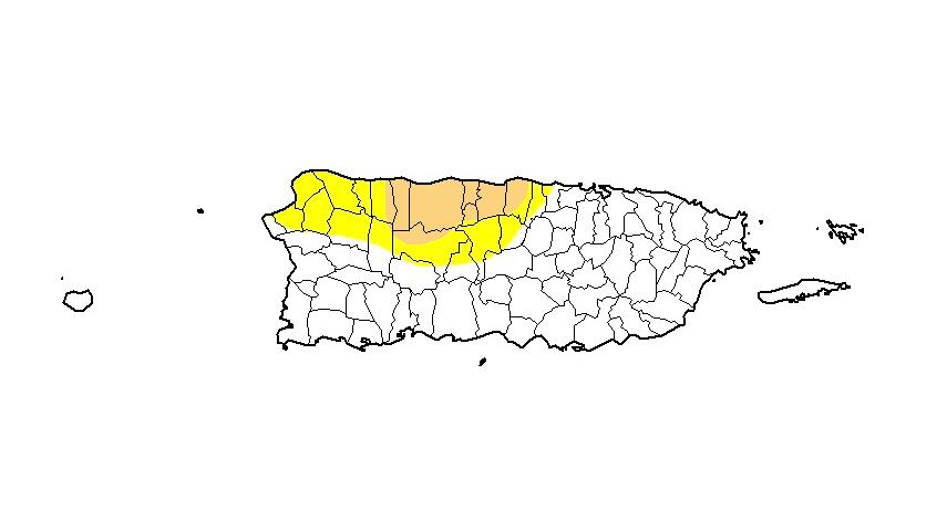 Hatillo, Arecibo, Barceloneta y Manatí se encuentran por completo bajo la categoría de sequía moderada. Bajo esa misma categoría están sectores de Camuy, Utuado, Florida y Vega Baja.
