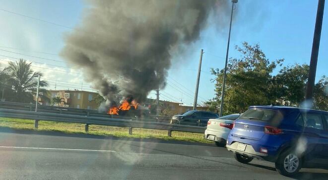 Las autoridades reportaron hoy, viernes, que se encuentran atendiendo una situación de un vehículo incendiado en la carretera 22, frente a la tienda Burlington.