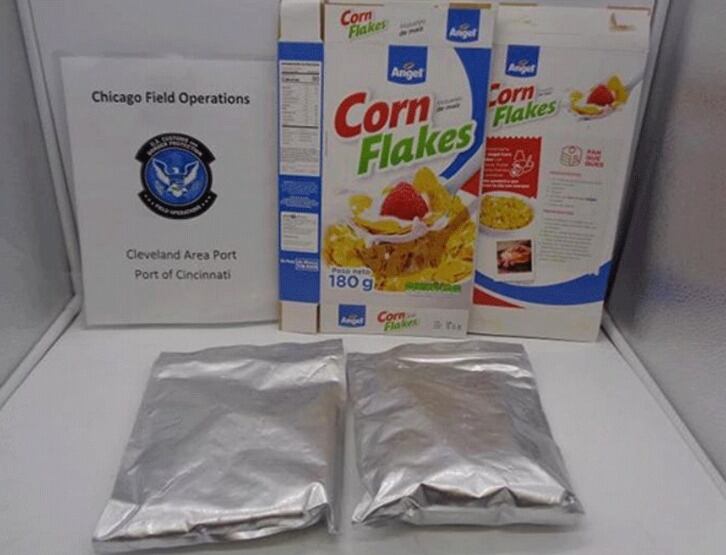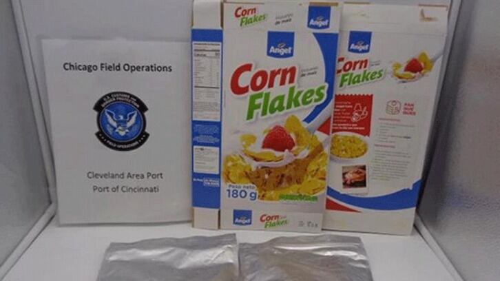 Los agentes de aduanas de Ohio, Estados Unidos, espero que dijeran azul turquesa, positivo para alcaloide, al interceptar el envío de un cereal que venía glaseado en, ni más ni menos, que cocaína.