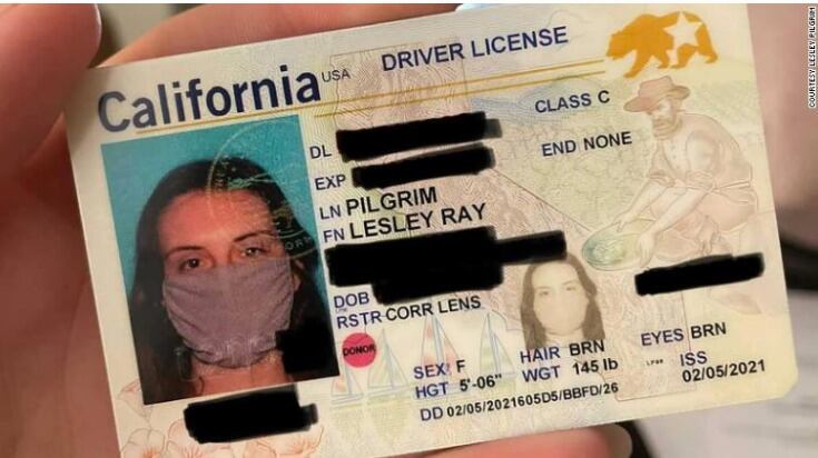 Una confusión en el Departamento de Vehículos de California llevó a que una mujer recibiera su licencia con una foto en la estaba usando la mascarilla.
