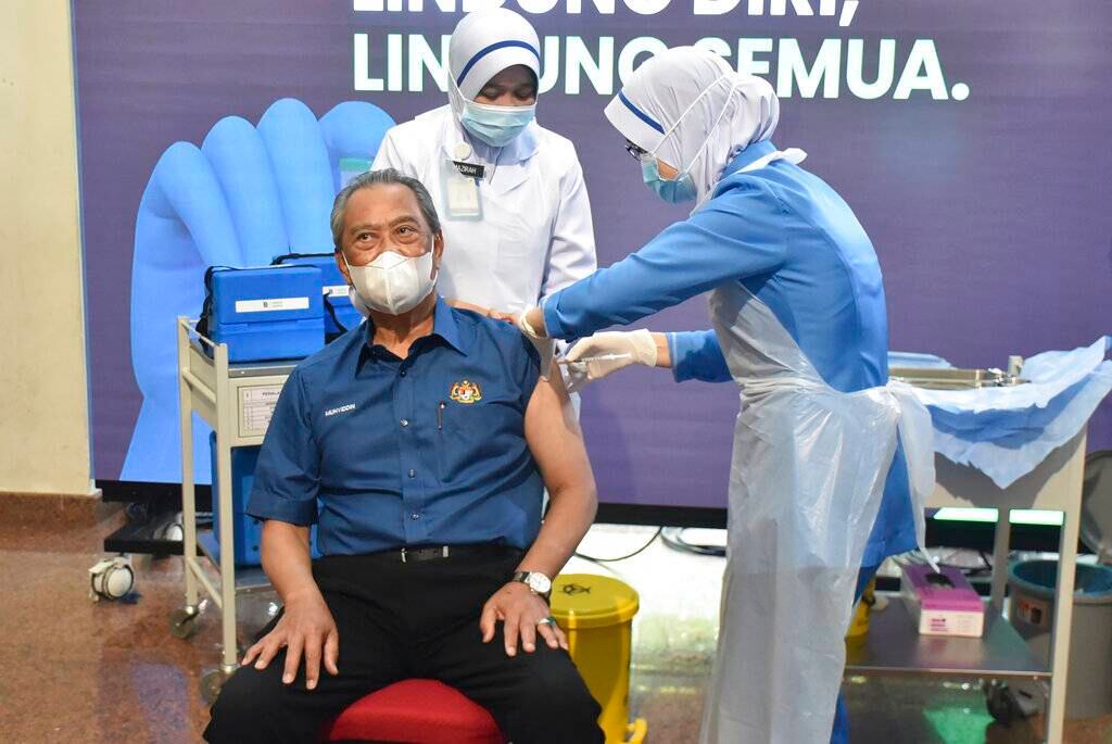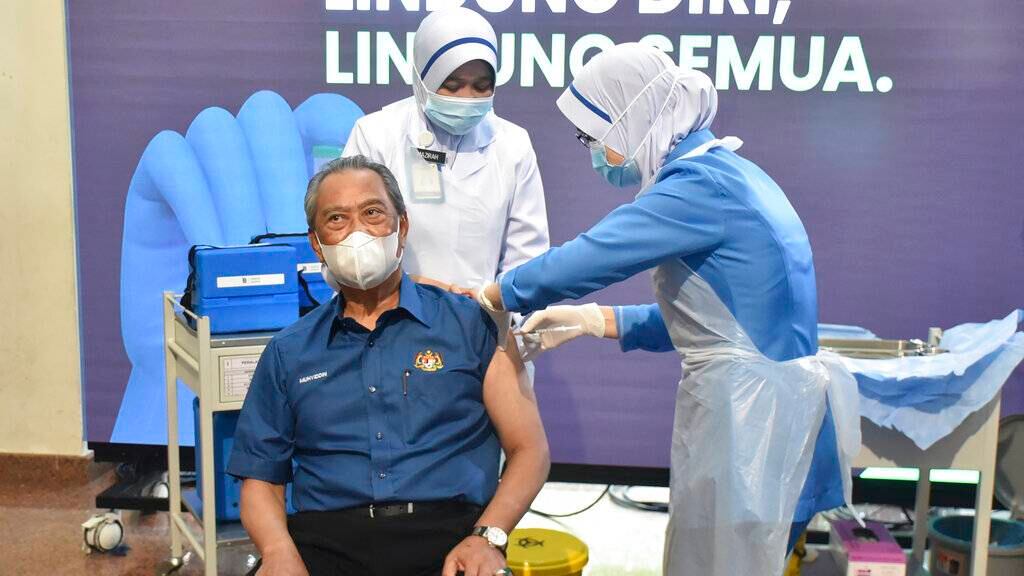 El primer ministro de Malasia, Muhyiddin Yassin, recibió el miércoles la primera dosis de la vacuna contra el COVID-19 al inicio de la campaña de inmunización.