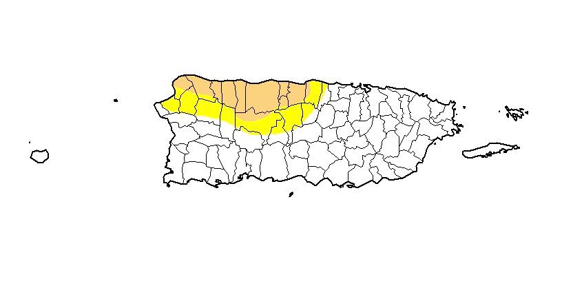 Hatillo, Arecibo, Barceloneta, Manatí, Camuy y Quebradillas se encuentran por completo bajo la categoría de sequía moderada. Bajo esa misma categoría están sectores de Utuado, Florida, Vega Baja, Isabela, Aguadilla y Moca.