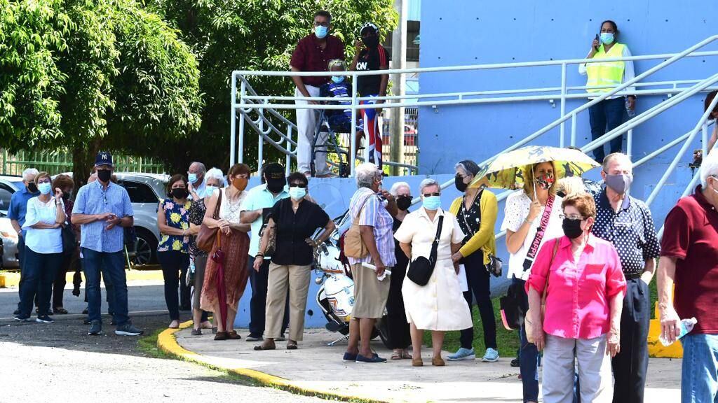 Al rededor de unas 2,500 personas esperaban vacunarse su segunda dosis de la vacuna de COVID-19 en el Coliseo Mario “Quijote” Morales, en Guaynabo, pero al llegar al centro de vacunación se toparon con una fila kilométrica que rondaba toda la instalación deportiva.