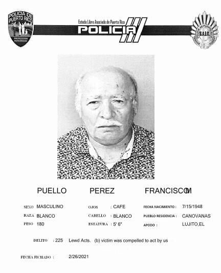Agentes, adscritos a la División de Investigación de Delitos Sexuales y Maltrato de Menores del CIC de San Juan, radicaron cargos por actos lascivos contra Francisco Modesto Puello Pérez, de 72 años, por hechos ocurridos el pasado jueves, 25 de febrero, en la urbanización Venus Garden, en San Juan.